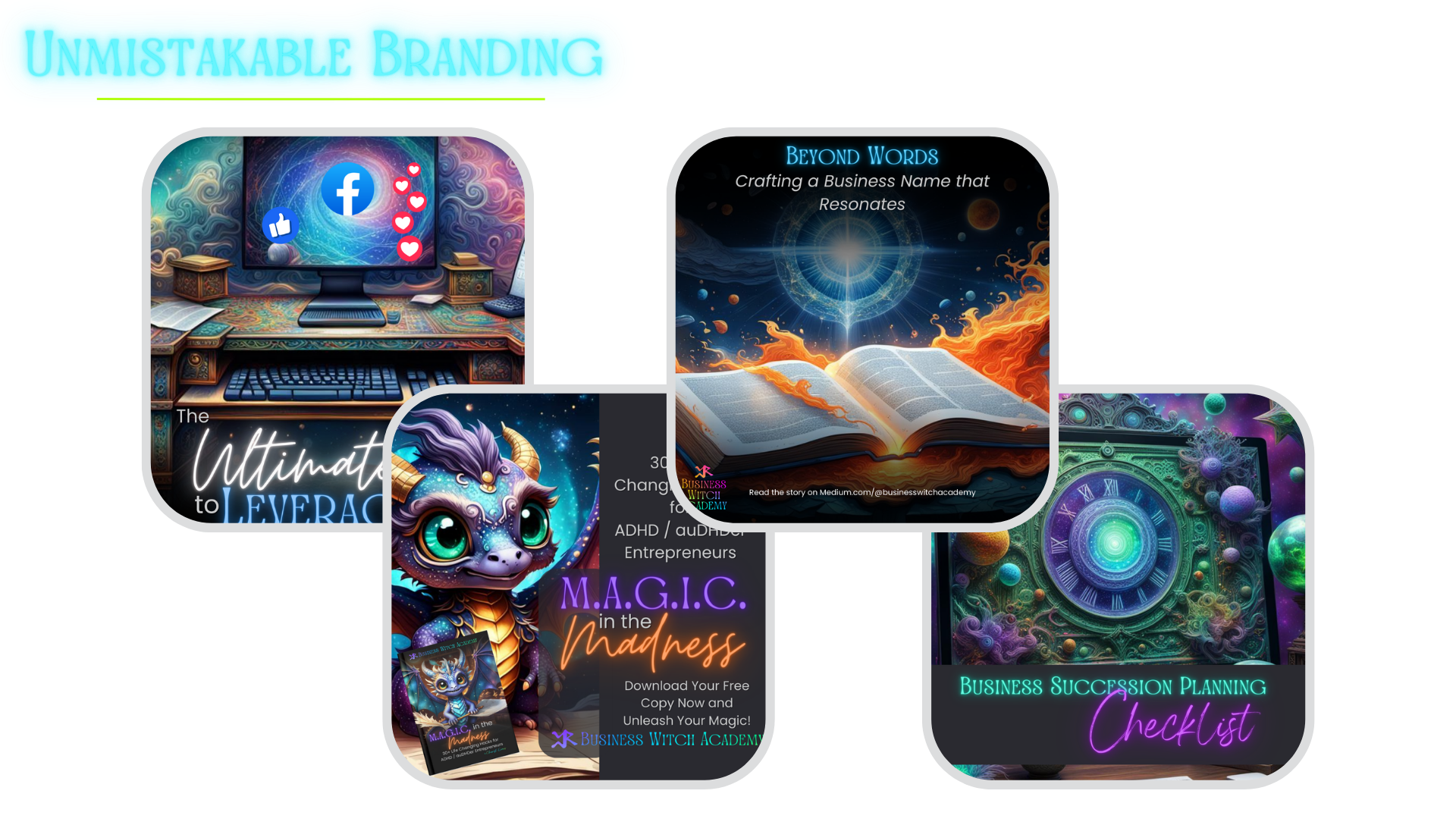 💬 Social Media Posts derived from the newsletter content shared across the Business Witch Academy channels