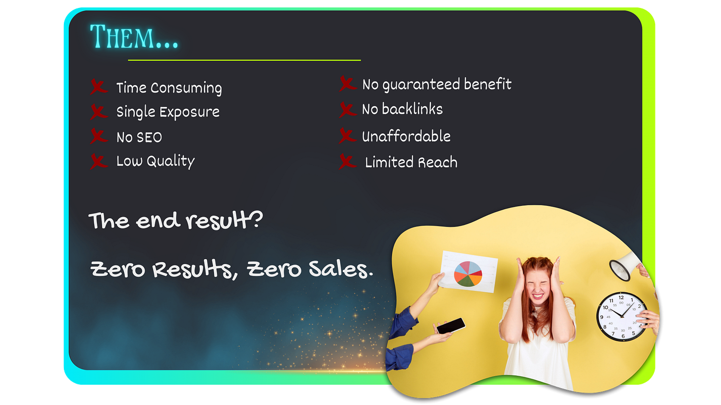 Alternatively, you can guarantee a mega social media boost by purchasing our Advertising Boost add-on product. This guarantees that we'll pick our favorite piece of your content for the month, share it across our social media channels, and purchase paid advertising on social media to extend your reach even further.