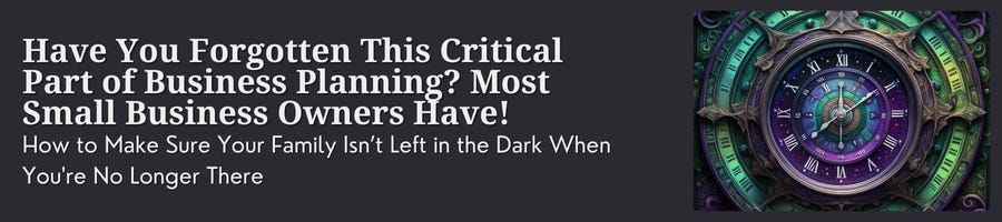 Want some actionable steps you can take right now to start preparing? Check out my article "Have You Forgotten This Critical Part of Business Planning? Most Small Business Owners Have!". Subscribers, make sure you click through to the article and get your free download of my new Business Succession Planning Checklist!