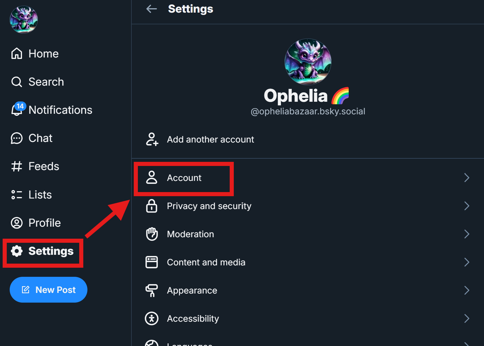 “Good. Now we’ll head to your BlueSky account. You’ll need to access your settings to change your handle.”