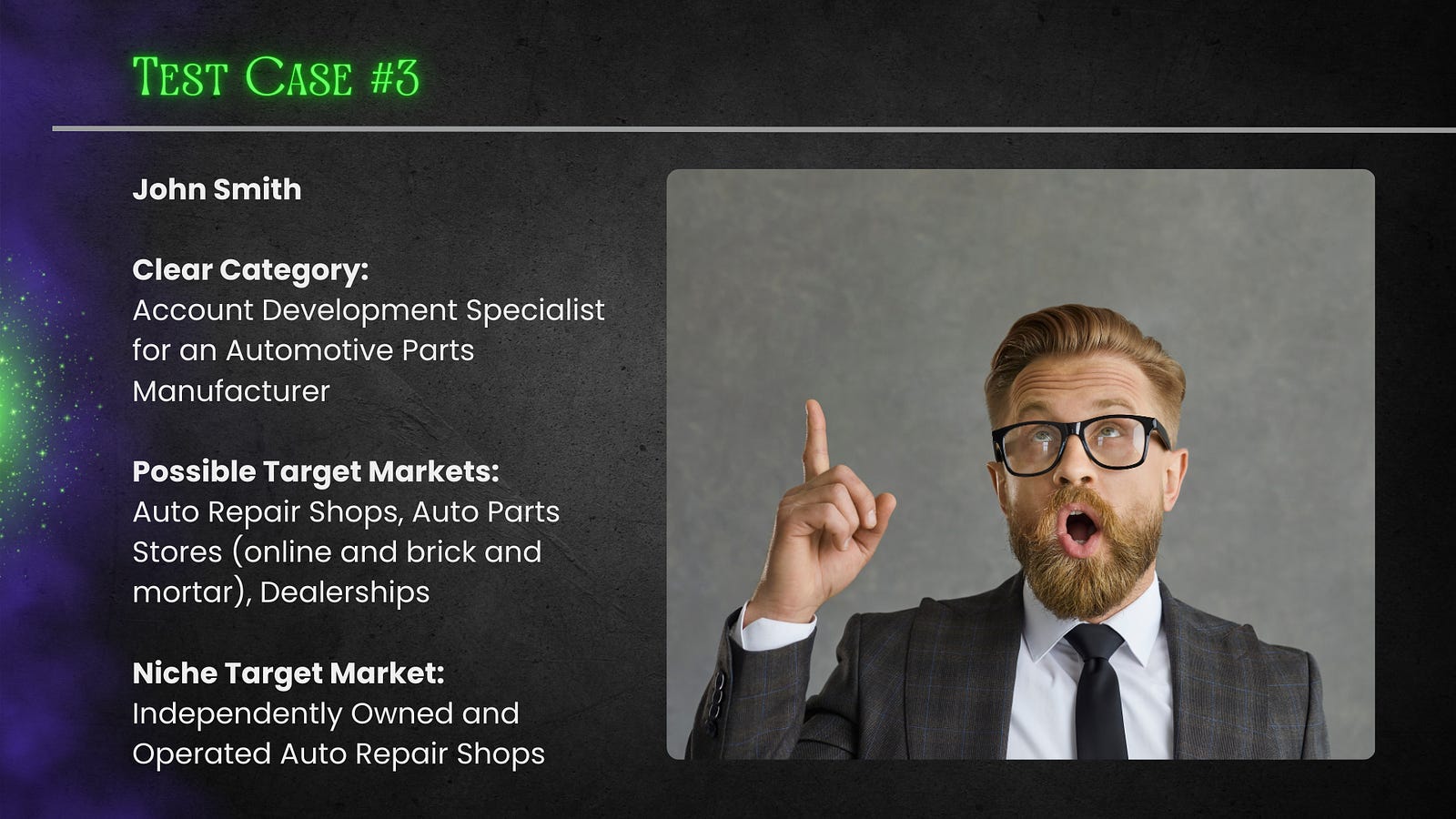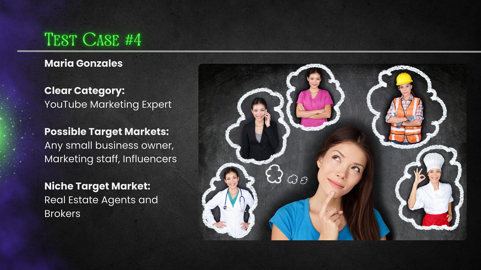 Letâs take a look at a few Test Cases to get a better understanding of the difference between a Possible Target Market and a Niche Target Market.â