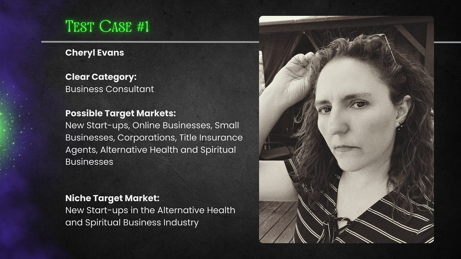 Possible Target Markets: New Start-ups, Online Businesses, Small Businesses, Corporations, Title Insurance Agents, Alternative Health and Spiritual Businesses